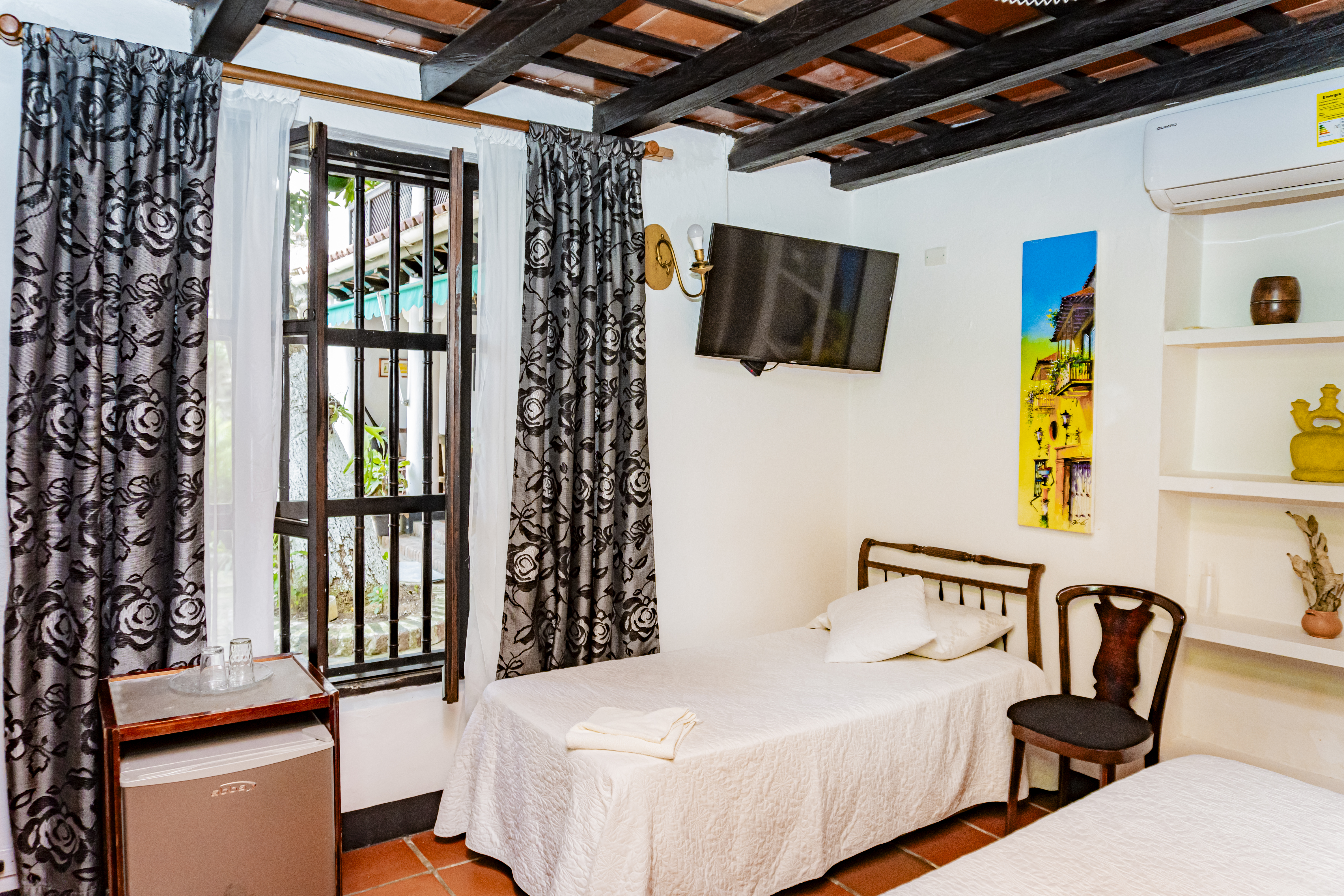 /nightCómoda y amplia habitación triple, equipada con una cama king y una cama sencilla. Ideal para pequeñas familias, con vista a nuestro encantador patio interior.